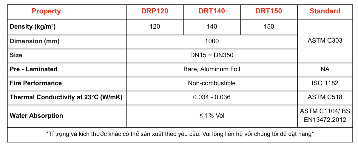 V. PHÂN LOẠI BÔNG KHOÁNG ROCKWOOL DẠNG ỐNG