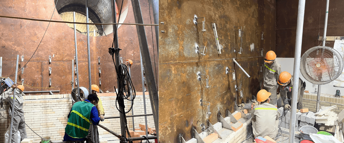 • Làm sạch tường lò cũ, loại bỏ vết nứt, vật liệu bong tróc.