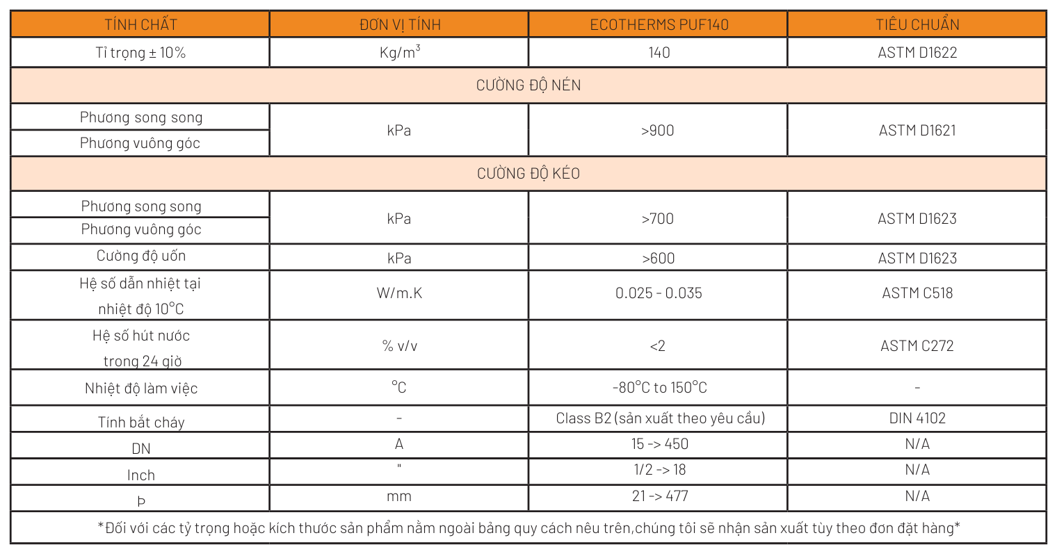 Gối đỡ foam ECOTHERMS PUF140 là các bộ phận sử dụng trong hệ thống đường ống công nghiệp để cung cấp khả năng cách nhiệt và hỗ trợ cho đường ống.
