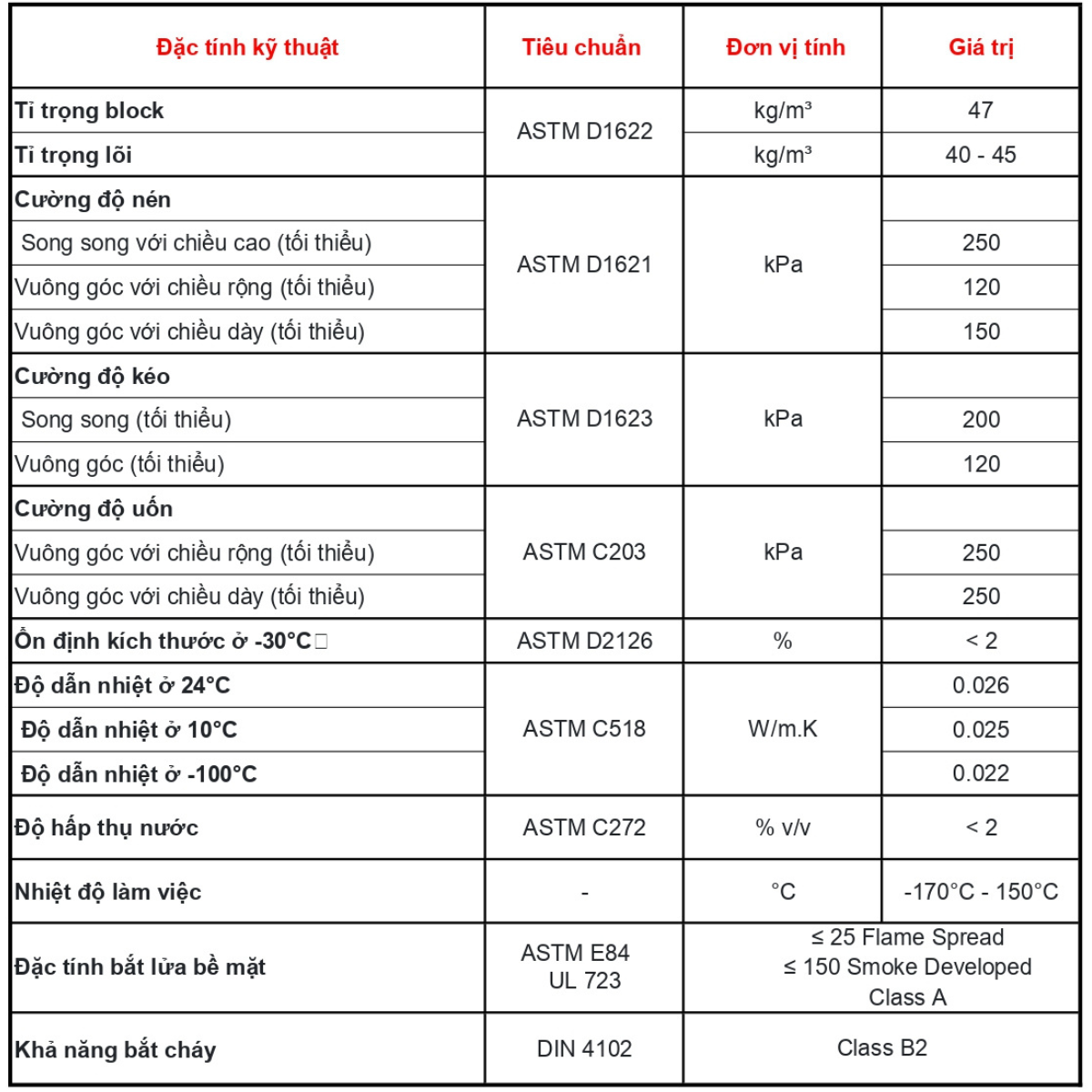 Ống PIR cách nhiệt Polyisocyanurate Pipe Insulation được sản xuất phù hợp và đáp ứng các tiêu chuẩn kỹ thuật ASTM C591 Grade 2 Type II.